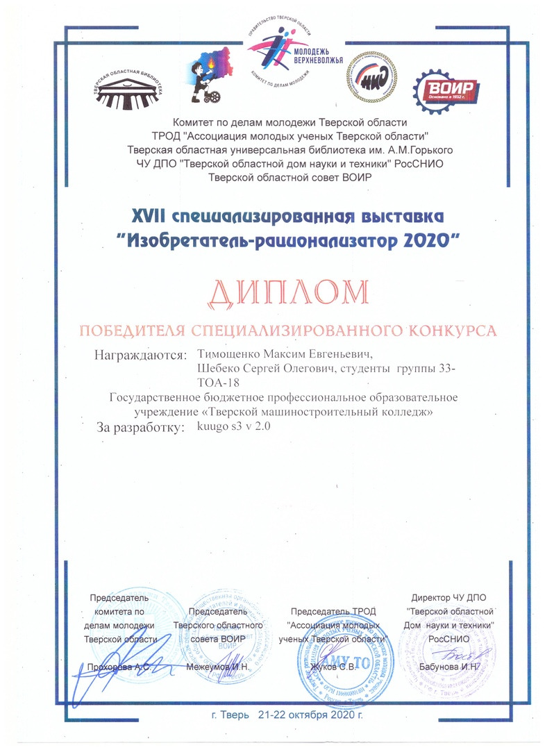 Главная Новости колледжа Победители конкурса 30.10.2020 Победители конкурса Наши студенты победили в специализированной выставке “Изобретатель рационализатор 2020”