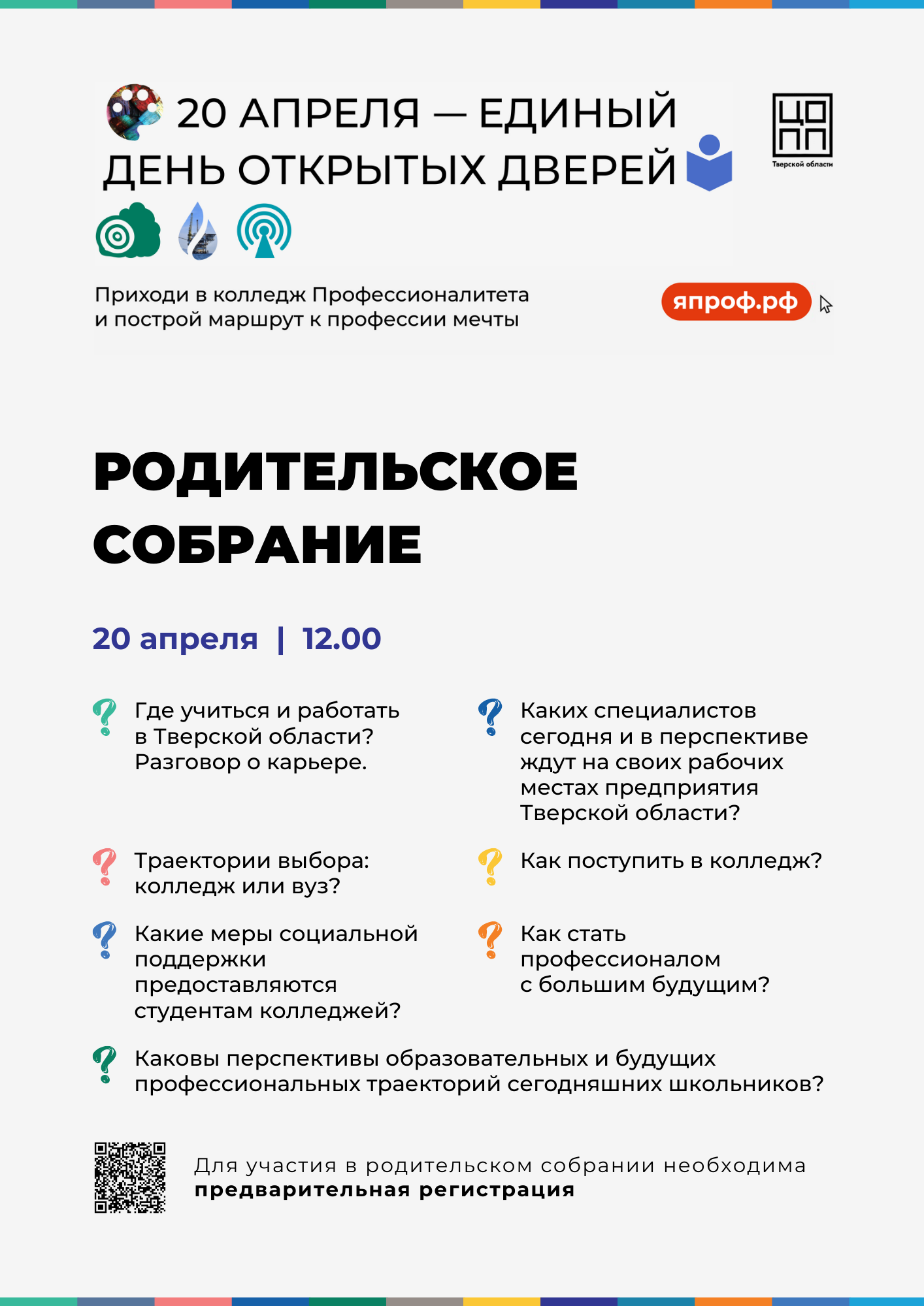 Главная Новости колледжа Родительское собрание 19.04.2024 Родительское собрание 20 апреля в 12 часов состоится родительское собрание Ссылка на родительское собрание в Сферум