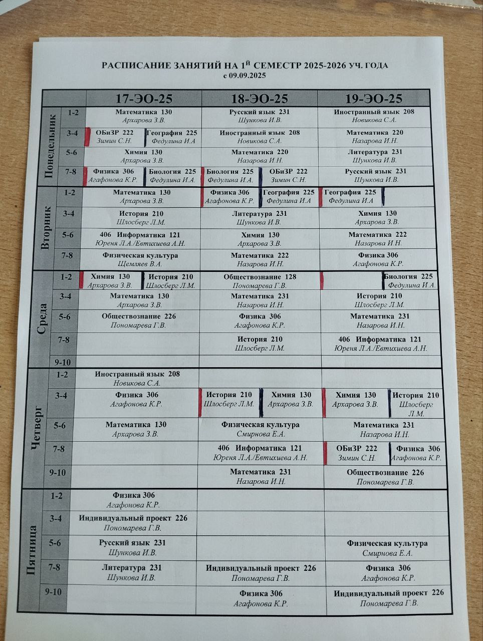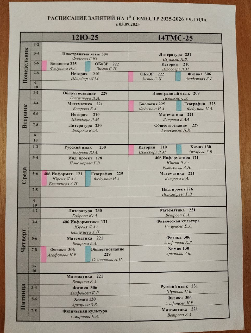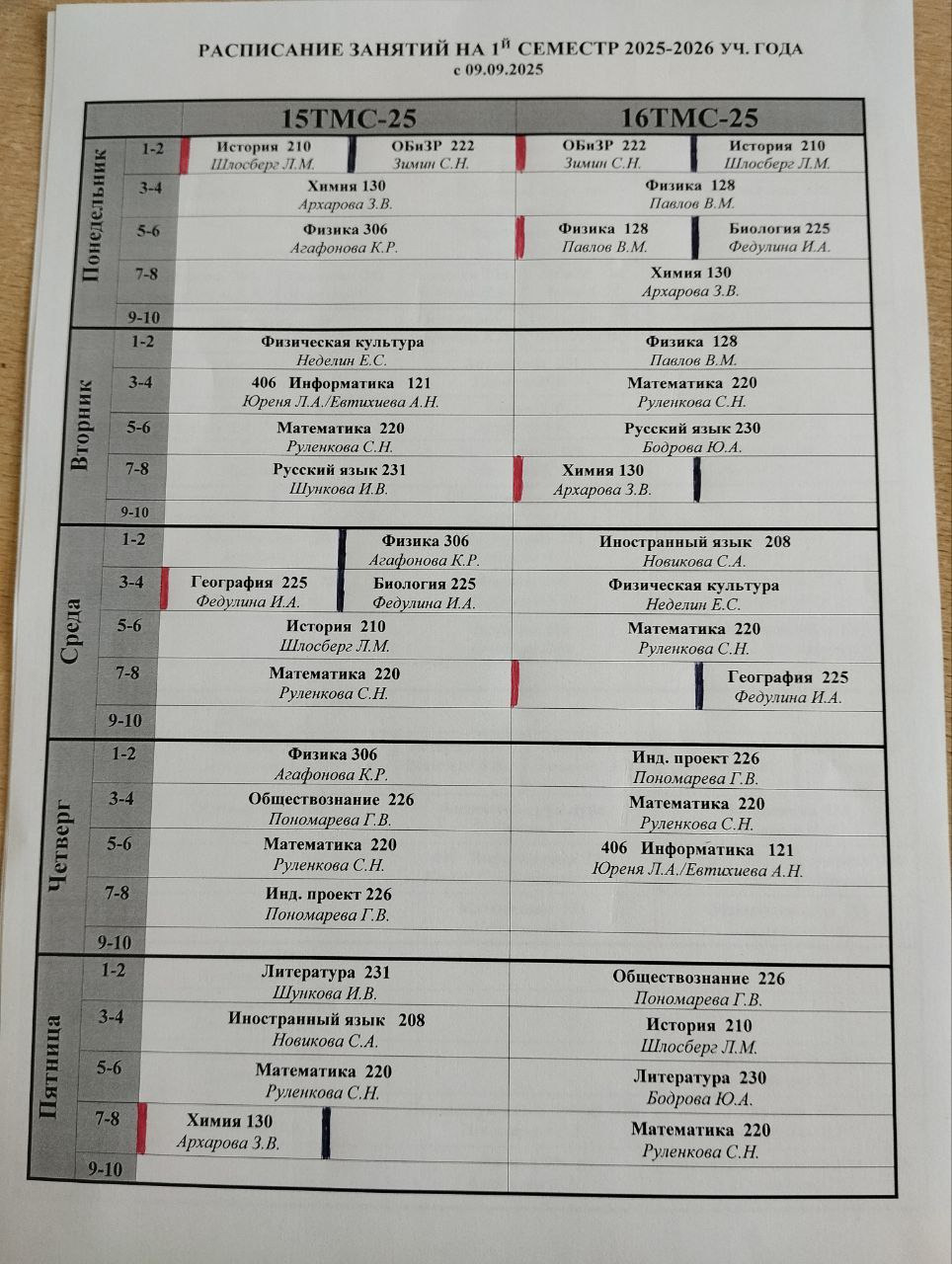 Расписание 1 курс