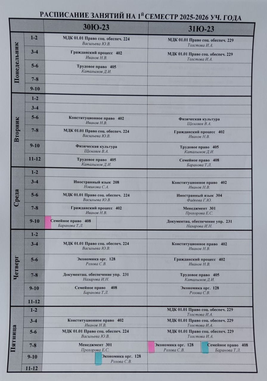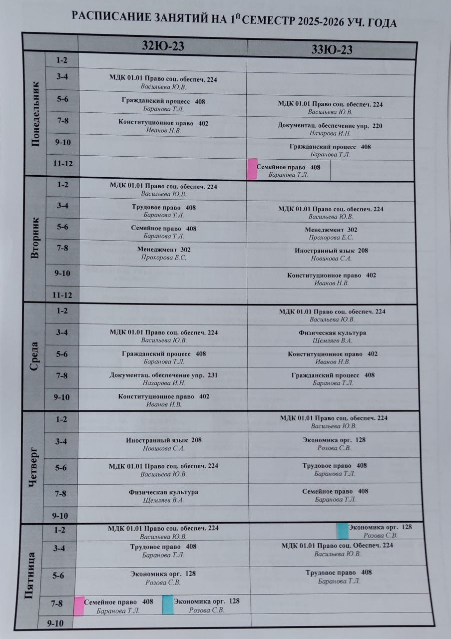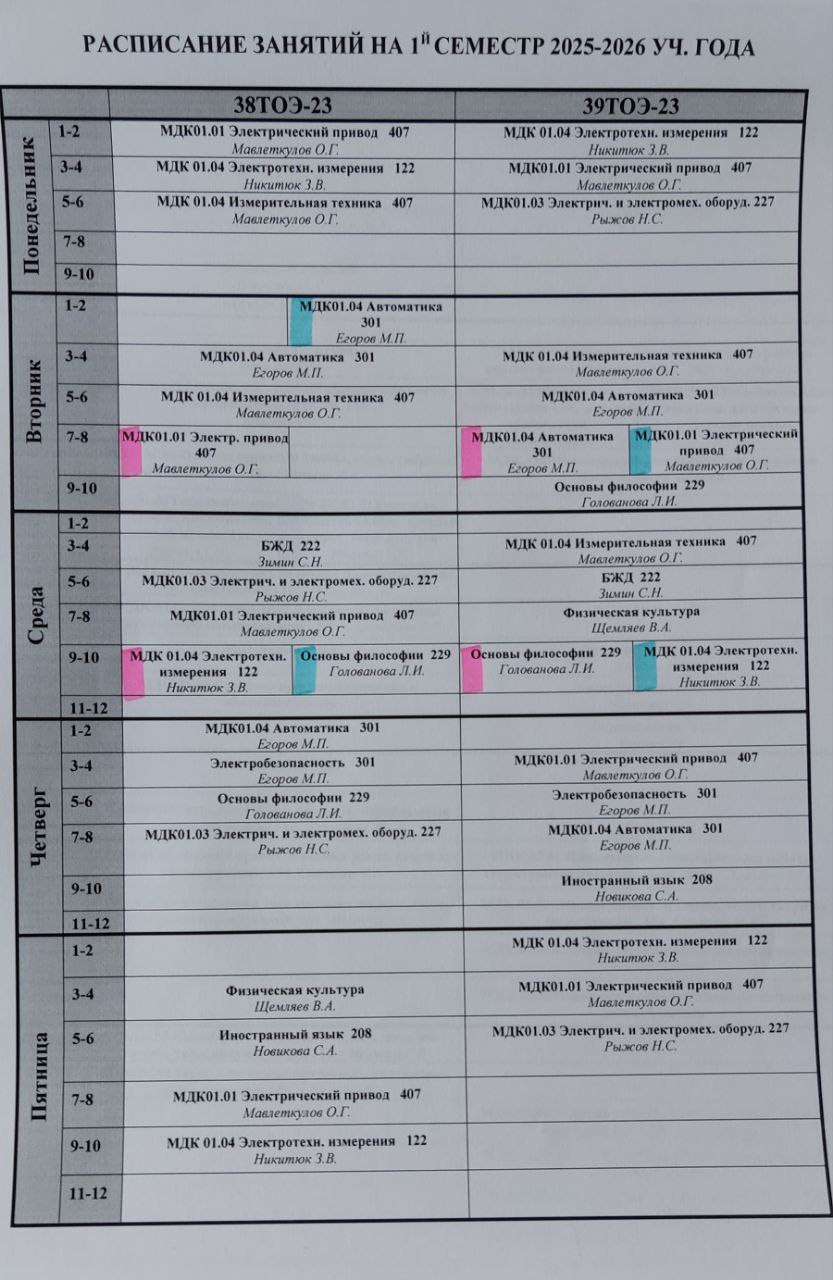 Расписание 3 курс