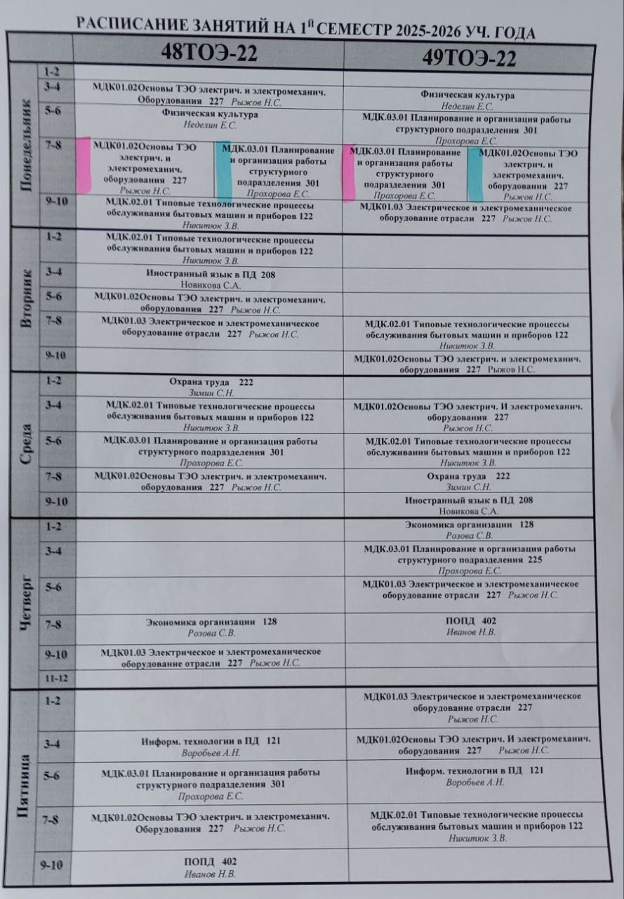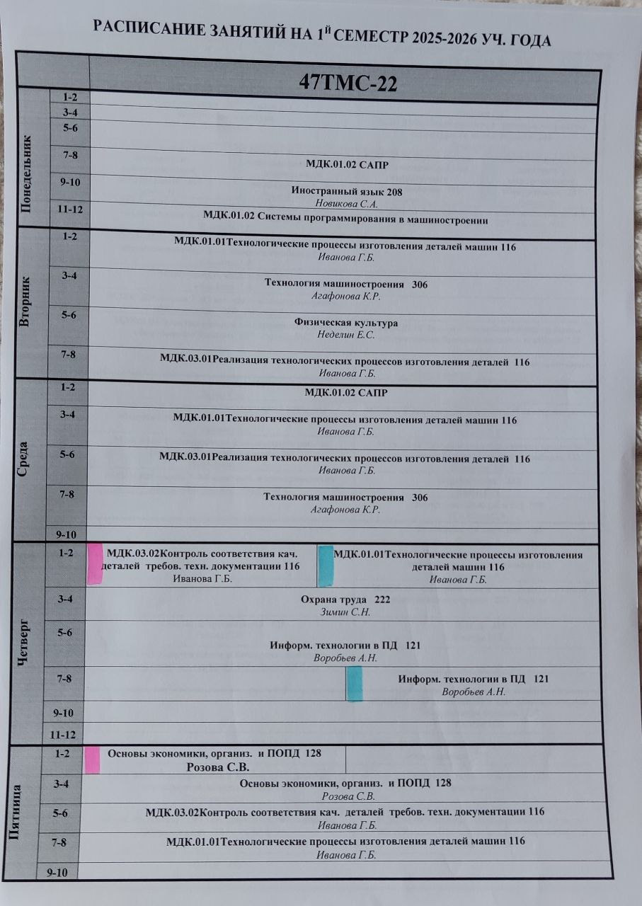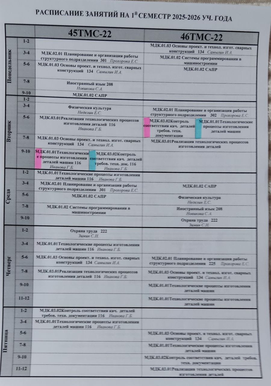 Расписание 4 курс